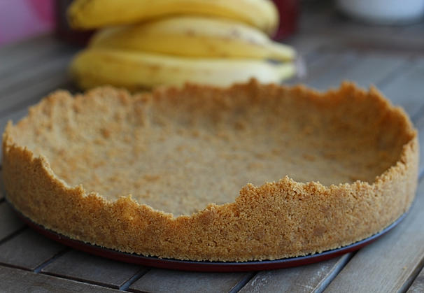 - Ανακατεύουμε καλά κι έπειτα αρχίζουμε να στρώνουμε τη βάση του banoffee στη φόρμα μας ανασηκώνοντας λίγο τα πλαϊνά και πιέζοντας με τα δάχτυλά μας έτσι ώστε να "σταθεί".